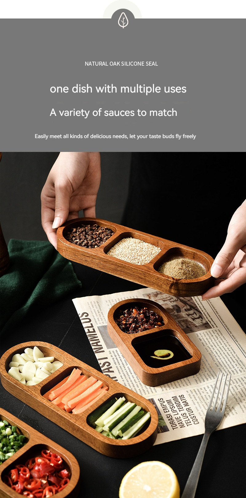 Solid wood sauce dipping seasoning plate